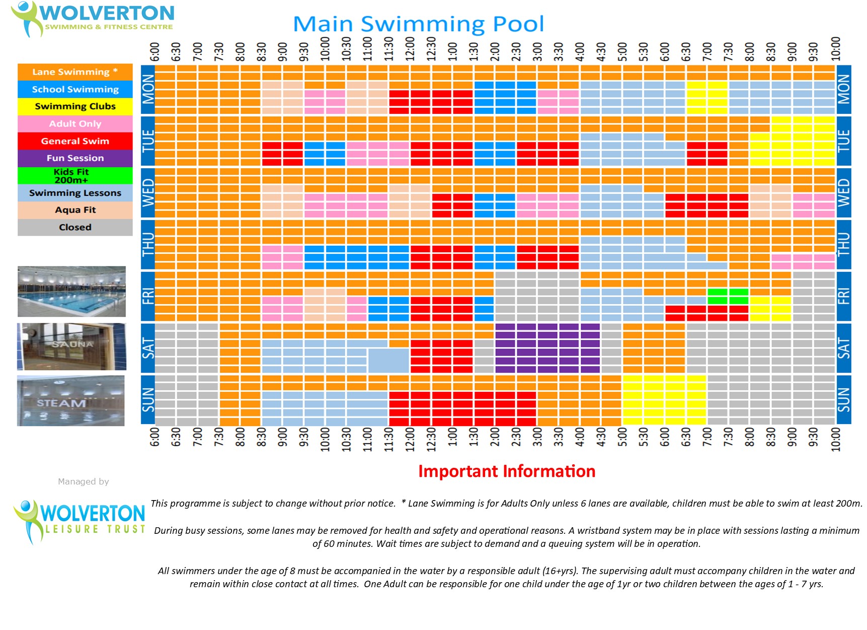 Sauna & Steam Room Opening Hours