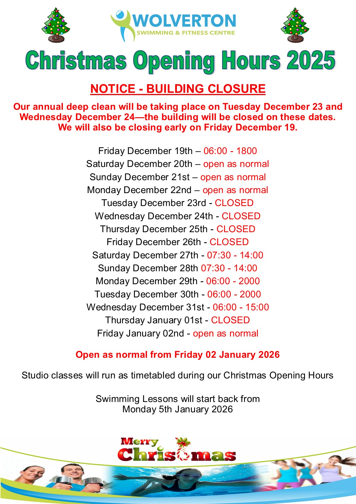 Christmas – Building Opening HoursHome » Customer Zone » Christmas – Building Opening Hours General Information (38)Pools Information (2)Studio Information (1)Spin Information (1)Membership Information (3)Latest News (6)
